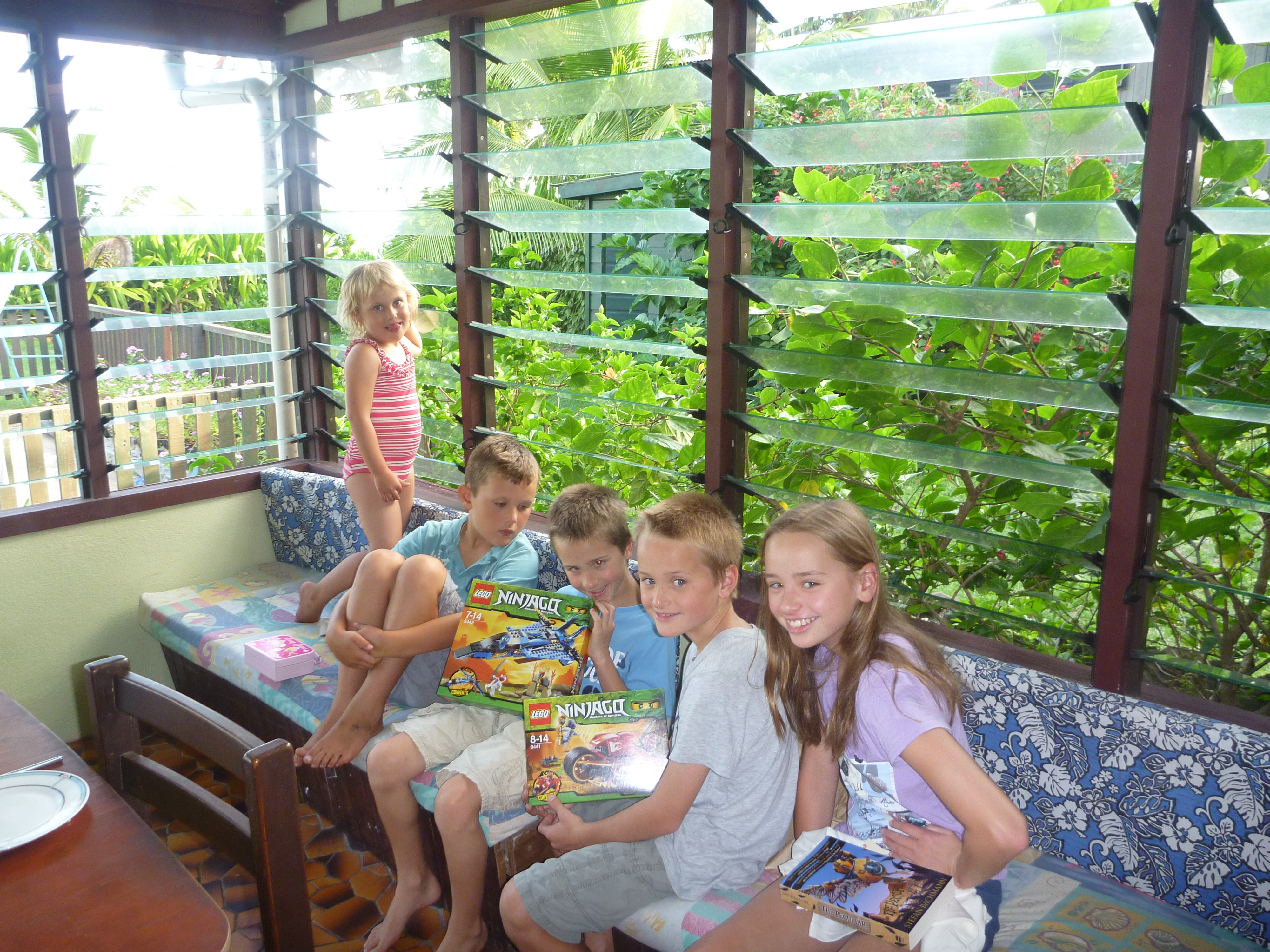 Nick and Ben were well pleased with their Lego, one can’t have enough Lego after all, and Tessa always enjoys a book, in particular with as much time as we had in Raro to read it!