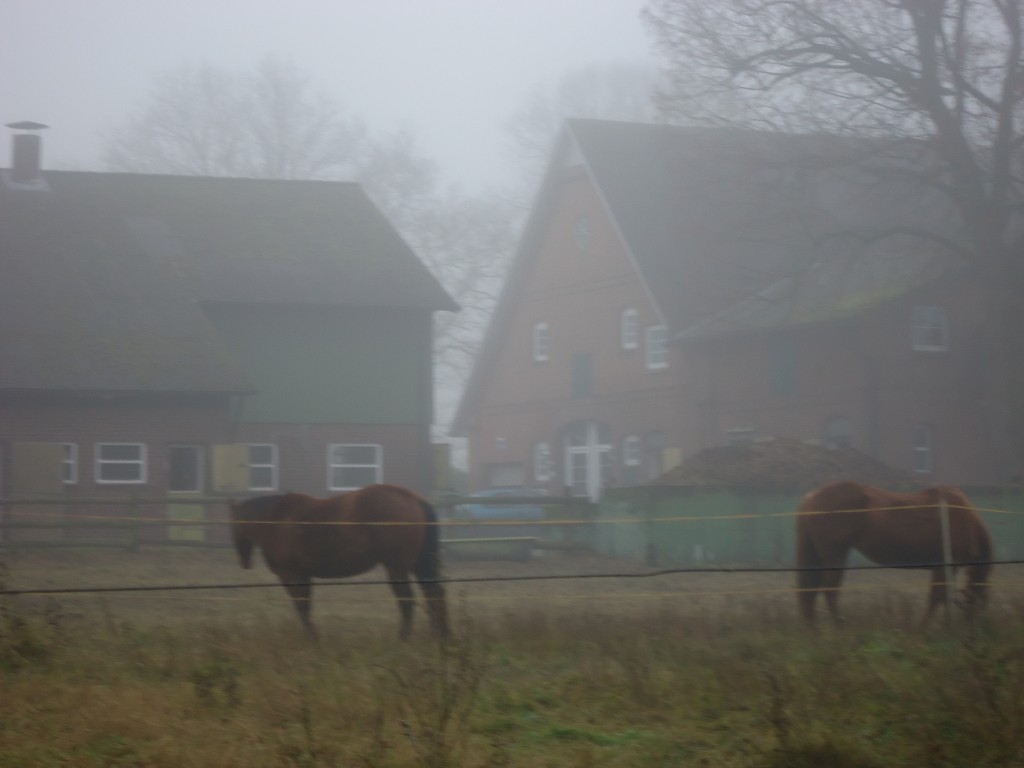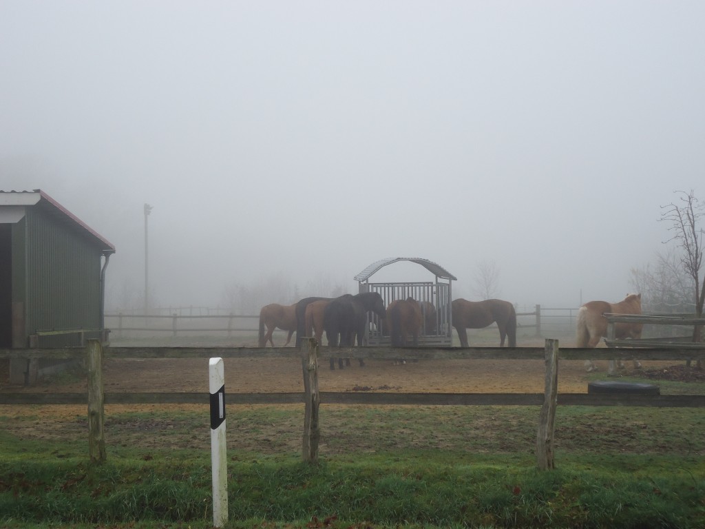 The horses having their breakfast of hay (at last I think that’s what they are eating, could of course be bacon and eggs for all I know).