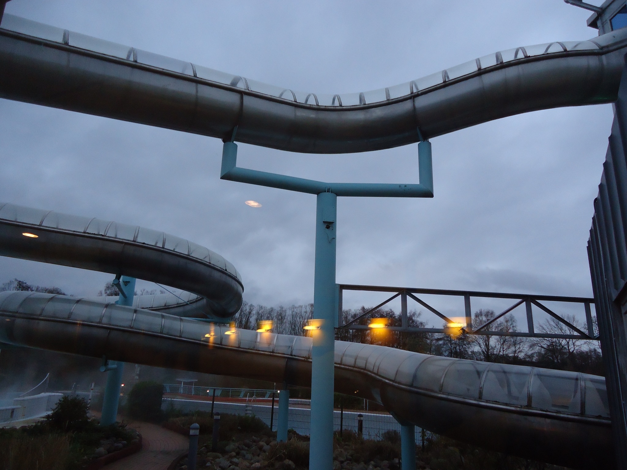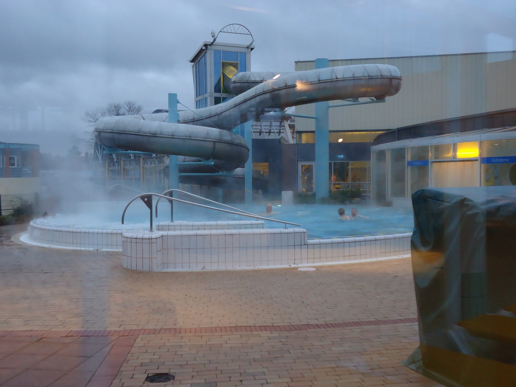 - This is the outside pool, which is my favourite, Above it looms the silver slide which whips you around from side to side. The children really like it, but I only did it once.
